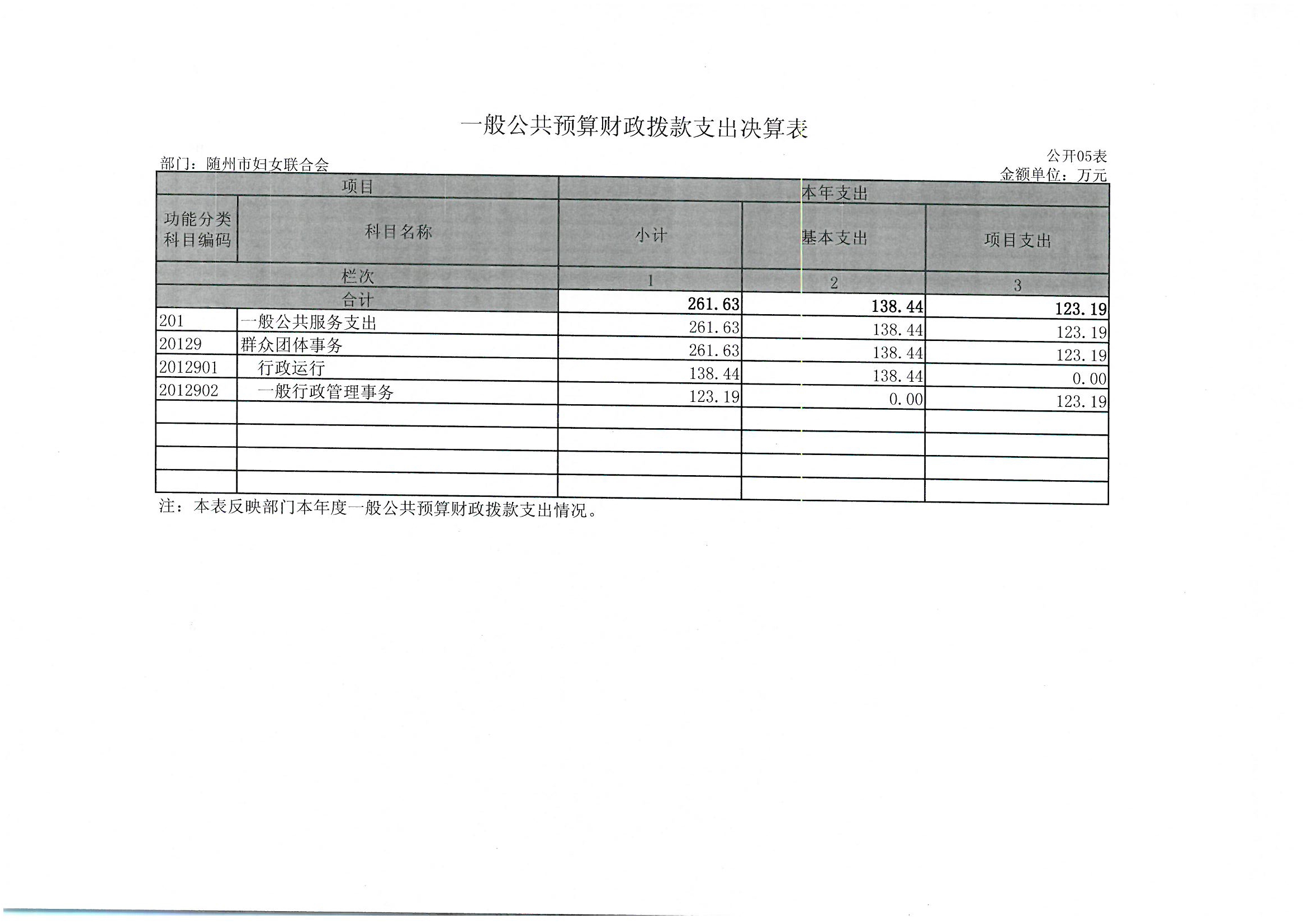 隨州市婦女聯合會2018年部門決算公開