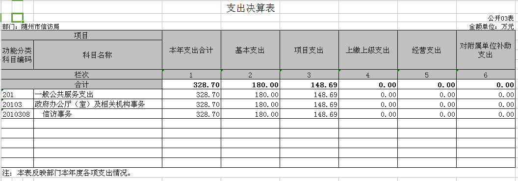 第三部分隨州市信訪局2018年度部門決算表