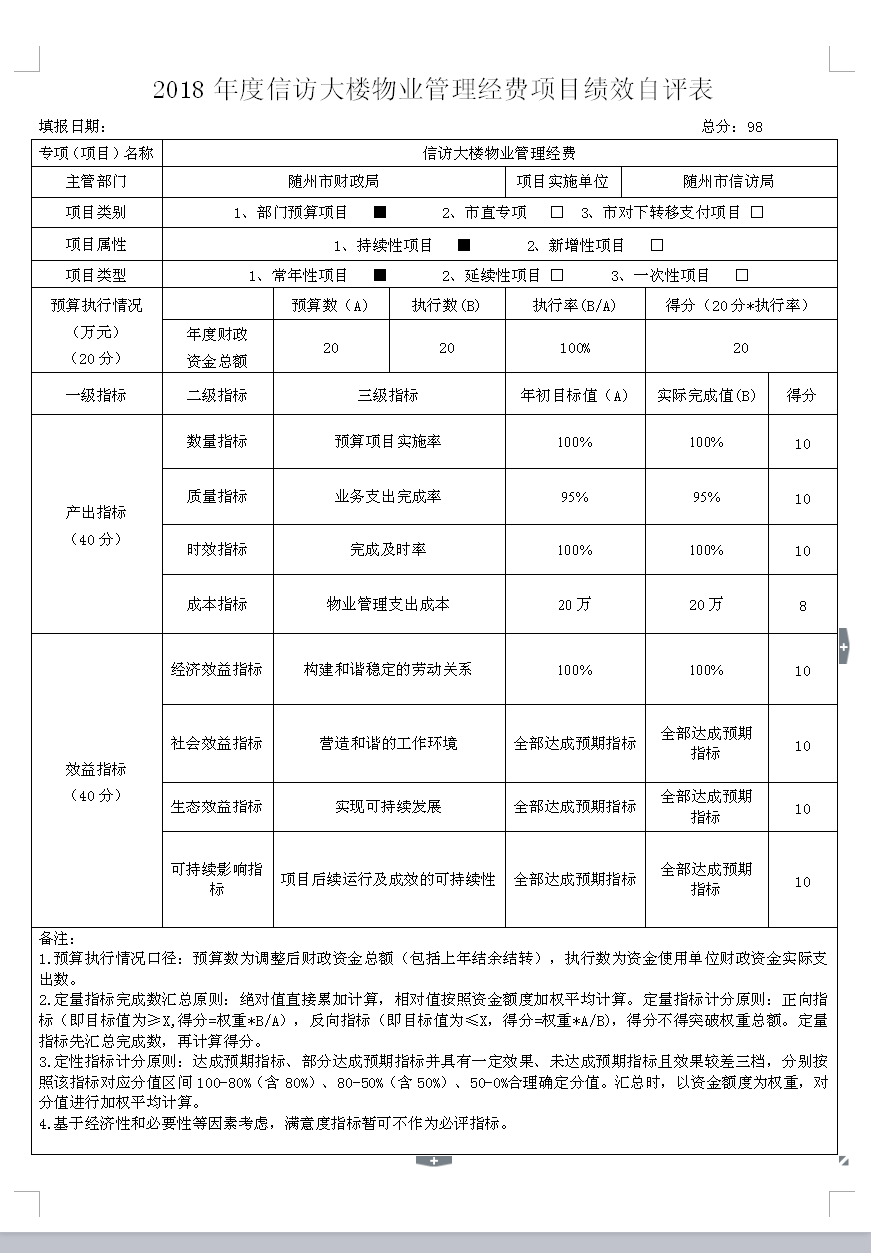 第四部分隨州市信訪局2018年度部門績效評價表
