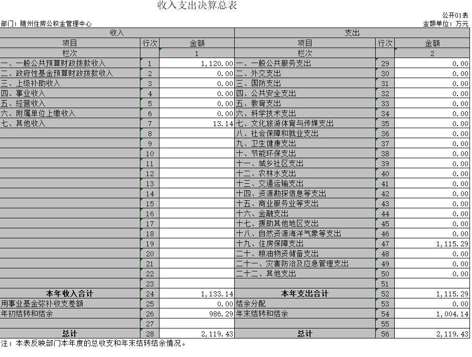2019年收入總計2119.43萬元,全部是財政撥款收入,其中:本年收入合計1133.14萬元,年初結(jié)轉(zhuǎn)和結(jié)余986.29萬元。