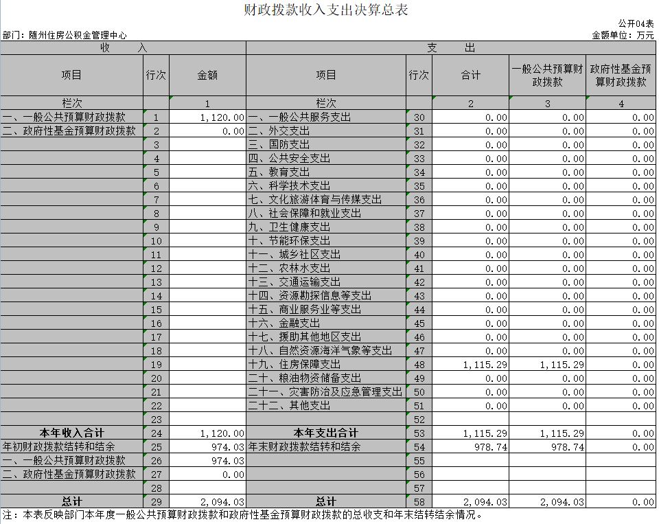 4、財政撥款收入支出決算總表