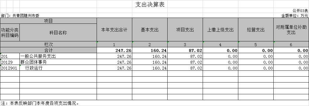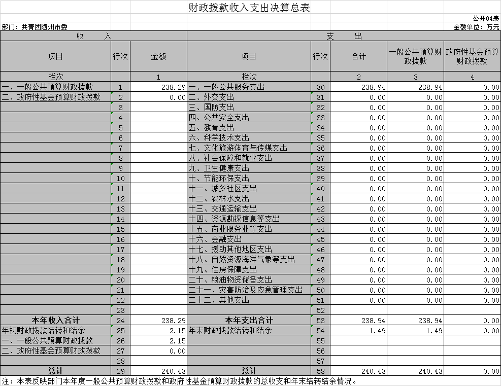 第四部分 ?共青團隨州市委2019年部門決算表