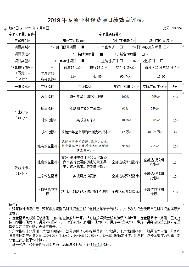 附1、2019年度隨州市檔案館整體支出績效自評表