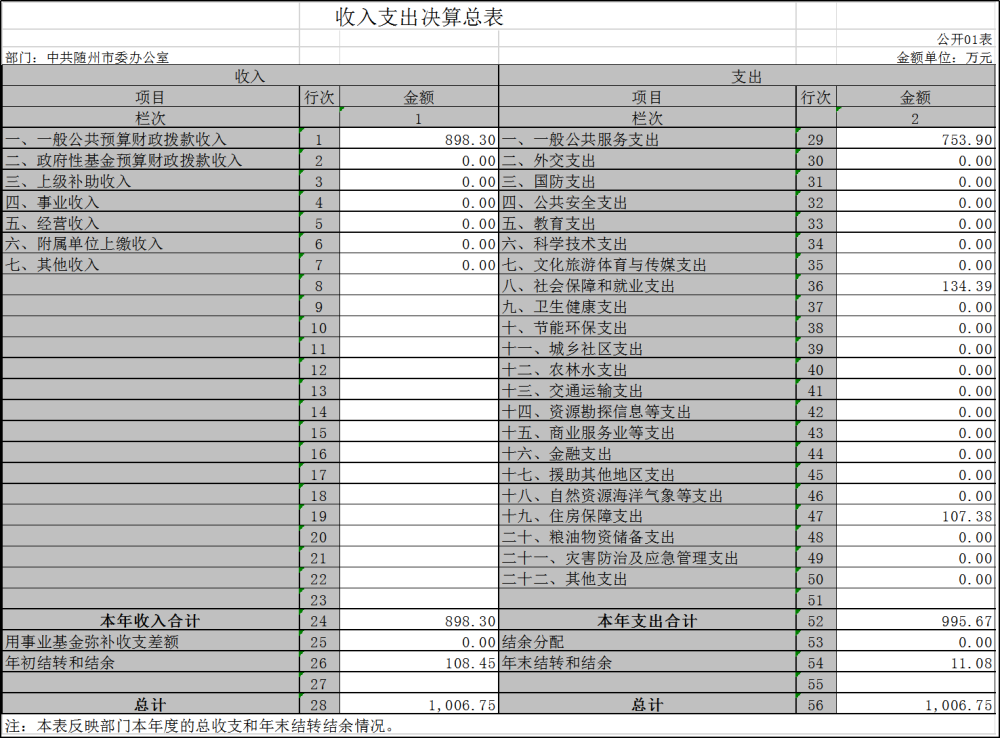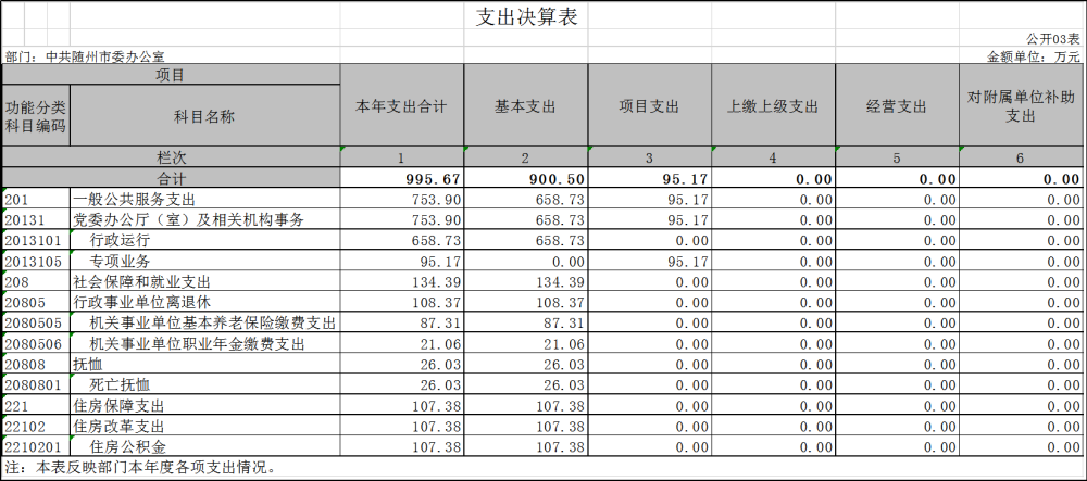 部門整體支出總額 | 1038.81萬元 | 995.67萬元 | 96% | 19 | |