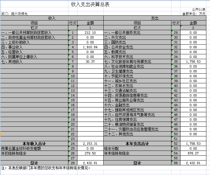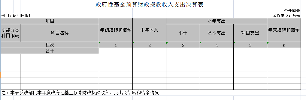 隨州日報社因無政府性基金,所以“政府性基金預算財政撥款支出決算表”無數據。