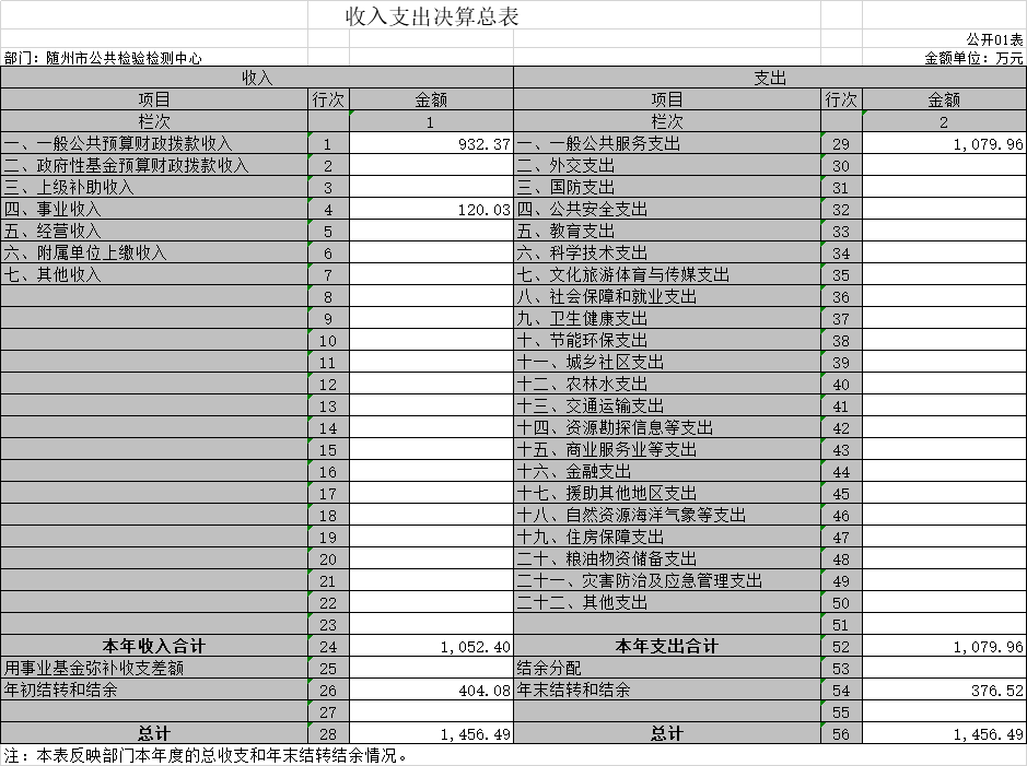 第三部分 隨州市公共檢測中心2019年部門決算表