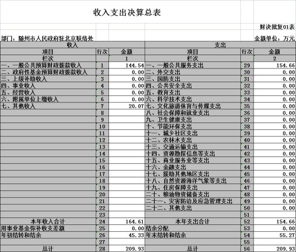 單位名稱 | 隨州市人民政府駐北京聯絡處整體支出績效自評表 | ||||||