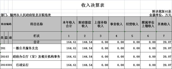 ?一般公共服務(類)行政運行(項):指市駐京聯絡處用于機關正常運轉的公務費用,包括辦公費、水費、電費、郵電費、物業管理費、差旅費、維修費、公務接待費、勞務費、工會經費、公務用車運行維護費等機關其他商品和服務支出。