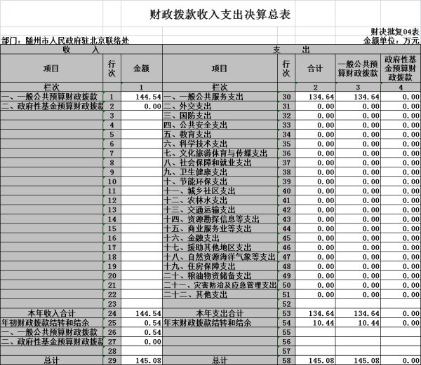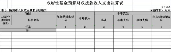 隨州市駐京聯絡處無政府性基金收支。