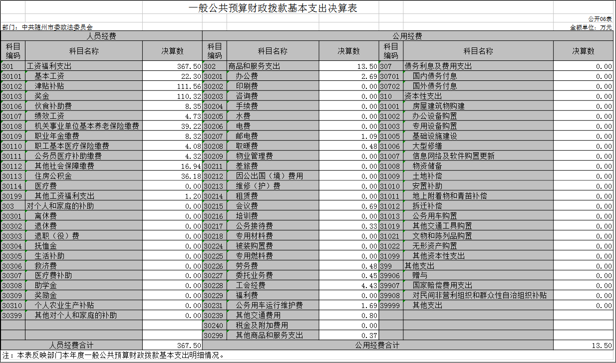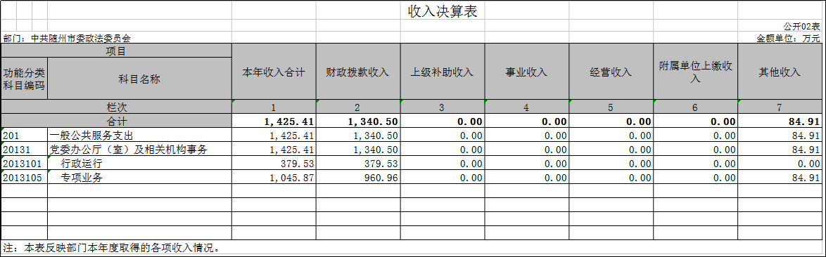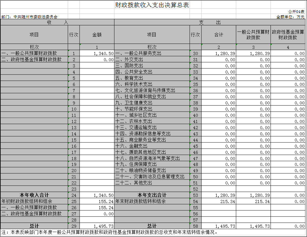 隨州市委政法委2019年部門決算
