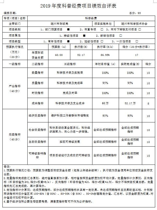 附2、2019年度隨州市科學技術(shù)協(xié)會項目支出績效自評表