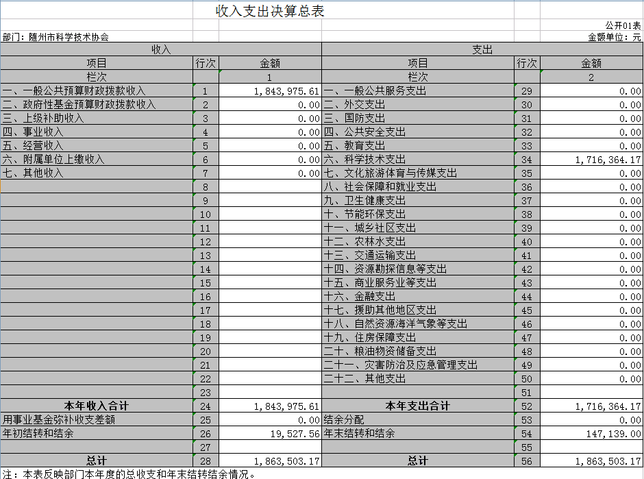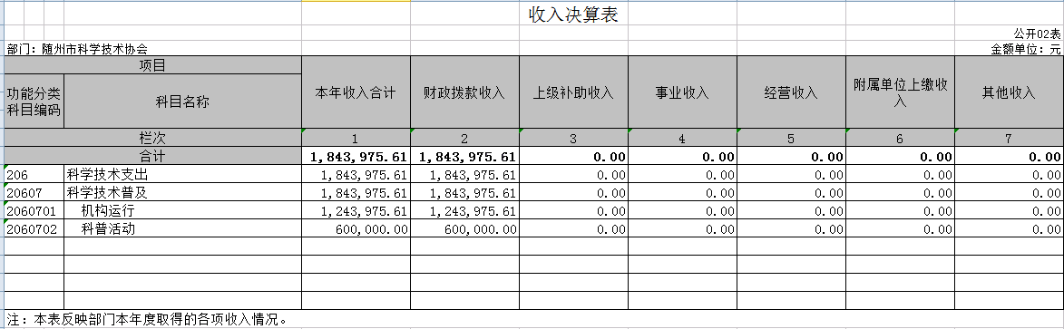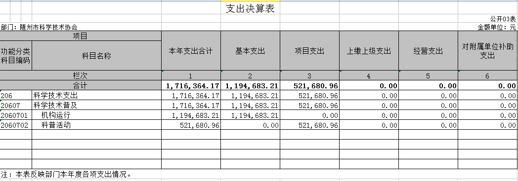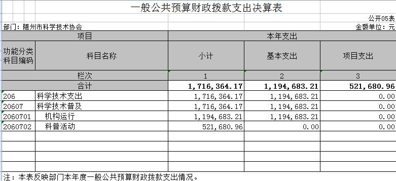 附3、2019年度隨州市科學技術(shù)協(xié)會部門決算表
