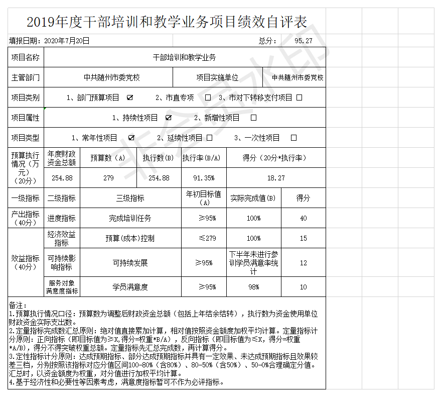 (八)關于2019年度預算績效情況的說明,以及市委黨校部門整體支出績效自評表一張以及項目績效目標自評表三張,隨州市委黨校績效評價報告.doc附件