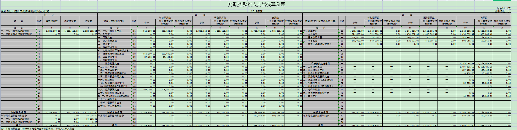 第三部分?2019年部門決算表