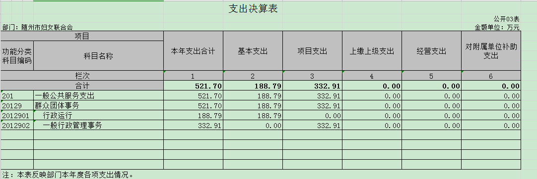隨州市婦女聯合會2019年部門決算情況