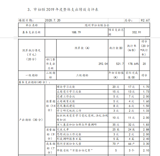 ??九、市婦聯2019年整體支出績效自評表