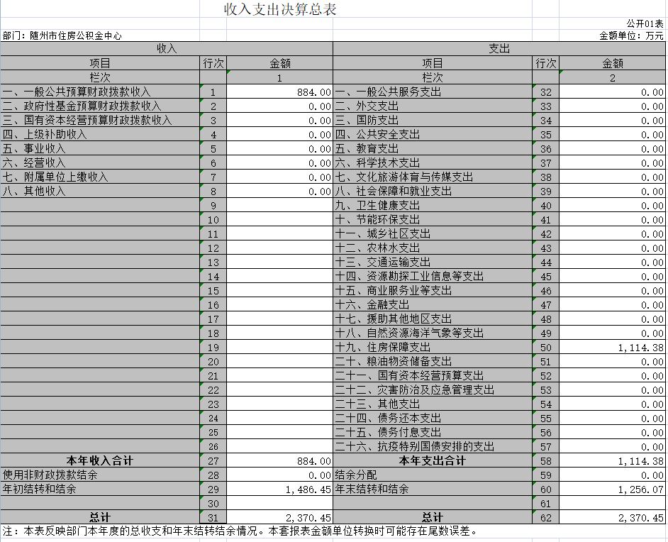 隨州市住房公積金中心為隨州市人民政府不以營利為目的的公益二類正處級事業單位,內設綜合科、財務會計科、歸集執法科、貸款管理科、內審稽核科、信息管理科、中心營業部、廣水辦事處和隨縣辦事處。年末實有人數45人,其中在職人員39?人,退休人員6人。