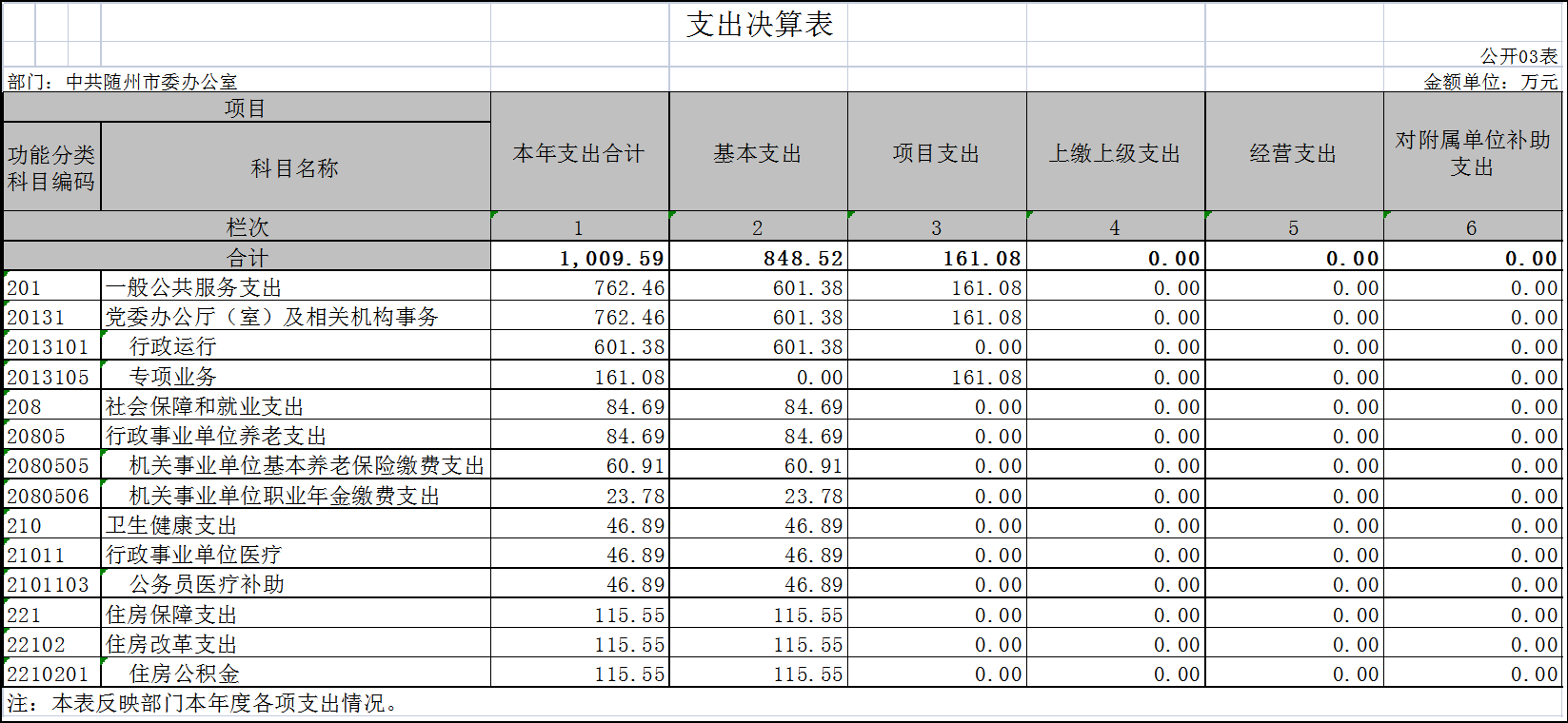 市委辦2020年度財政撥款收入預算為844.47萬元,實際收到的一般公共預算財政撥款收入為1091.97萬元(追補的為審核撥付的獎勵性工資及召開的市委全會和全市抗疫表彰大會等會議費);財政部門撥款對賬單1091.97萬元,無差額 。全年財政撥款支出1009.59萬元,比上年的總支出995.67萬元增加13.92萬元,主要用于更新公務用車等。