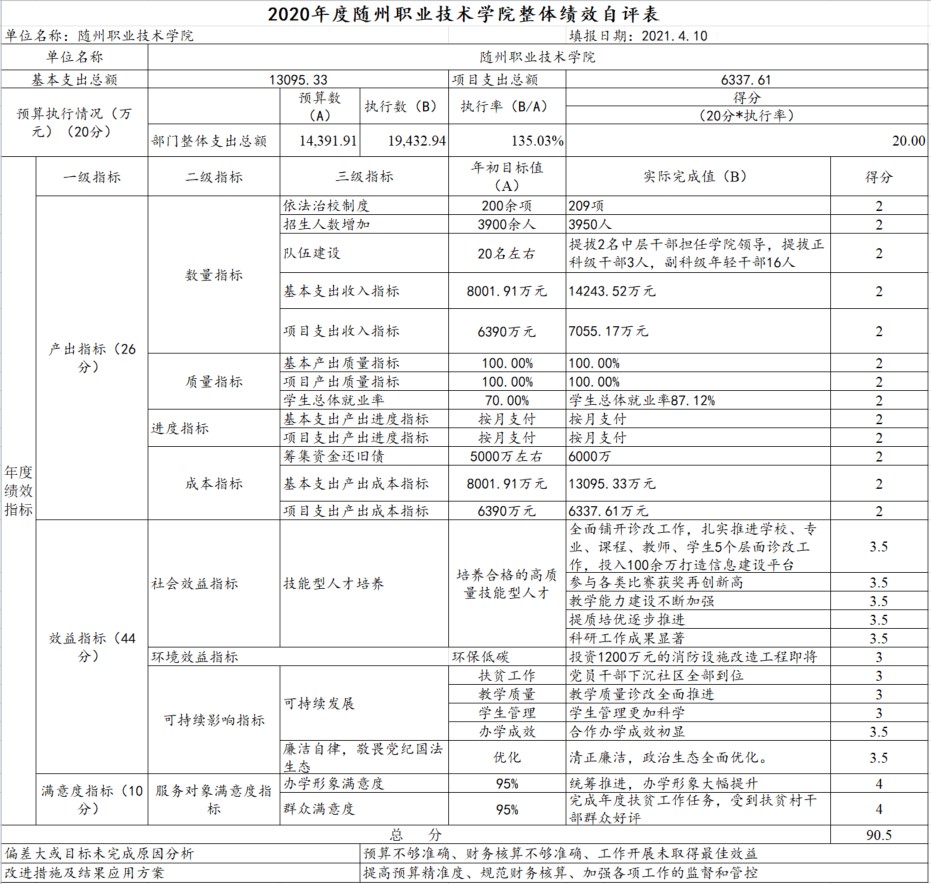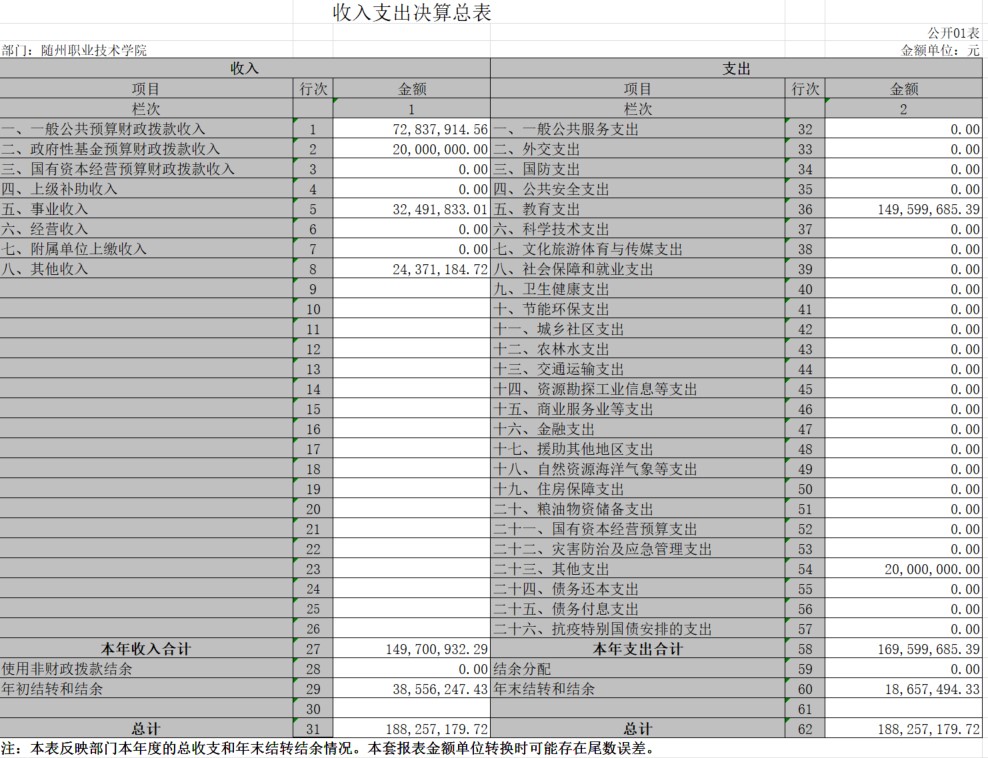 隨州職業(yè)技術(shù)學(xué)院2020年部門決算公開信息