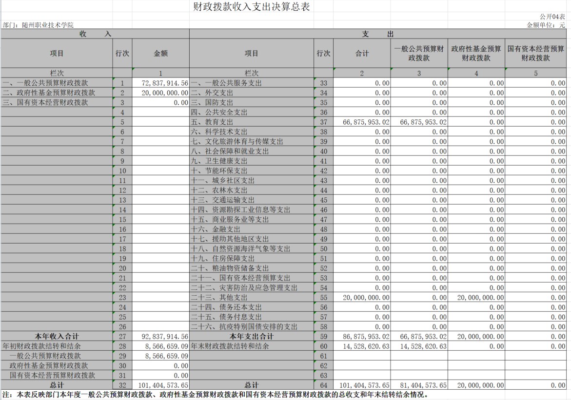 三、隨州職業(yè)技術(shù)學(xué)院2020年部門決算公開表