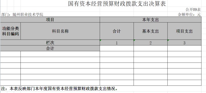 本部門無(wú)國(guó)有資本經(jīng)營(yíng)預(yù)算財(cái)政撥款,09表為空表。