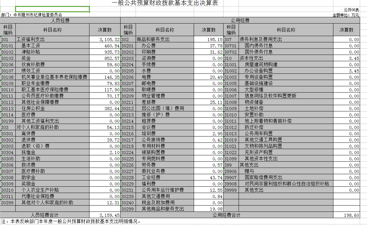第三部分? 隨州市紀(jì)委監(jiān)委2020年決算表