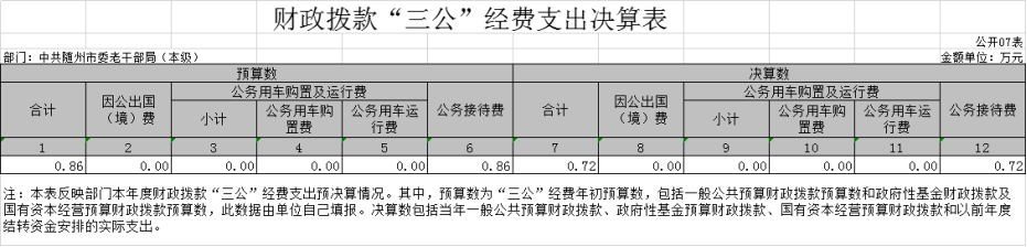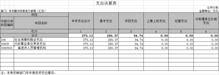 三、中共隨州市委老干部局2020年部門決算表