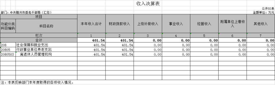中共隨州市委老干部局2020年部門決算