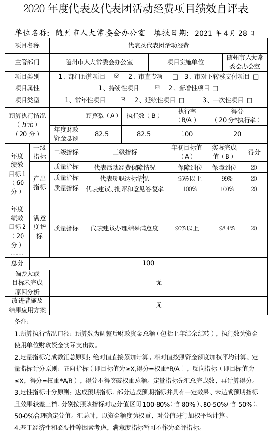 4、代表及代表團活動經(jīng)費82.5萬,實際支出82.5萬。主要用于保障代表及代表團開展各種活動經(jīng)費。該項目執(zhí)行率達到100%。