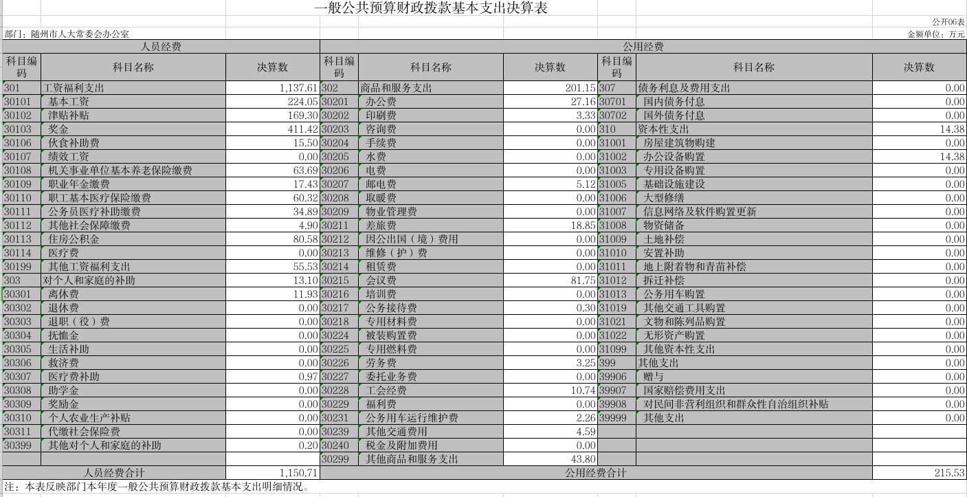 4、基本支出:指為保障機構(gòu)正常運轉(zhuǎn)、完成日常工作任務(wù)而發(fā)生的人員支出(包括基本工資、津貼補貼等)和公用支出(包括辦公費、水電費、郵電費、交通費、會議費、差旅費等)。