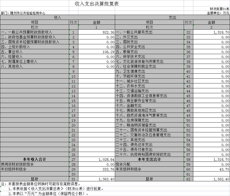 第三部分??隨州市公共檢測中心2020年部門決算表