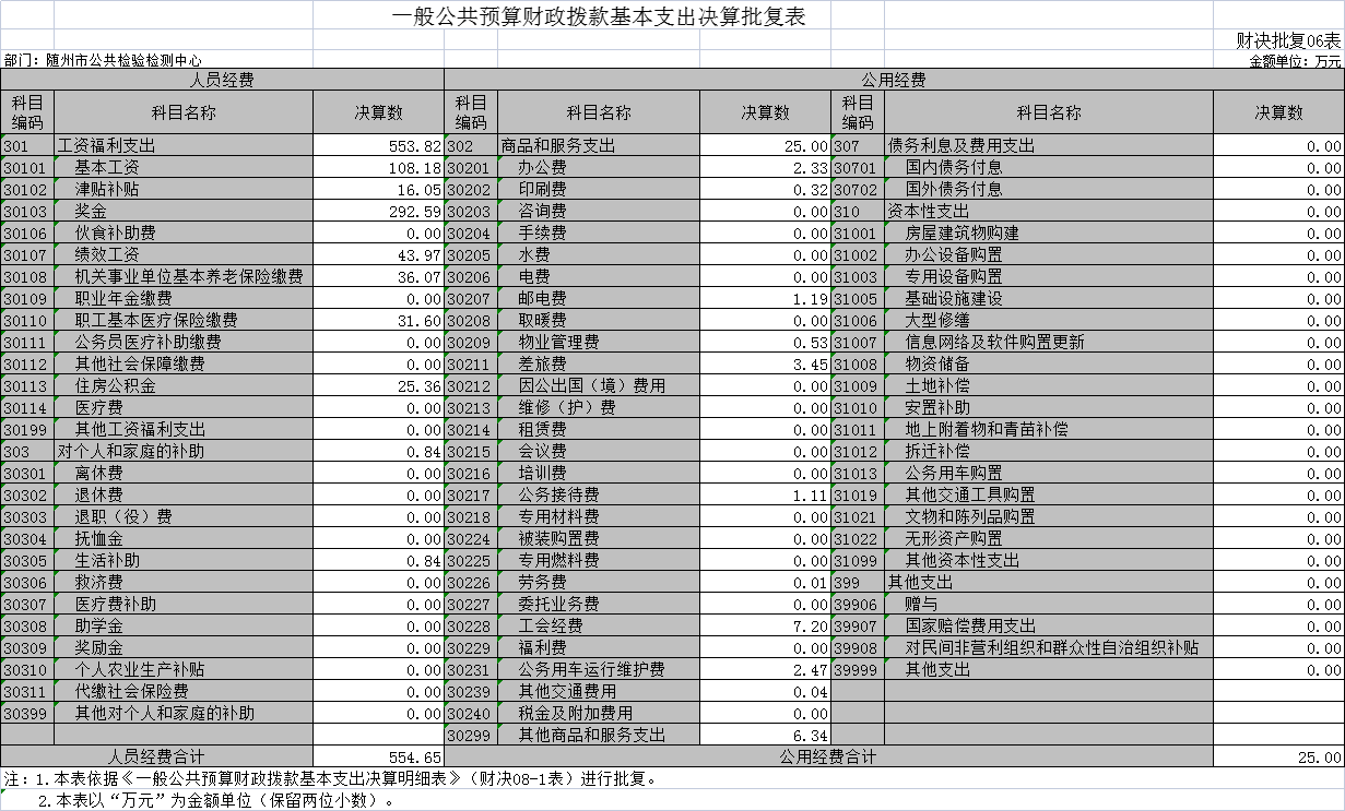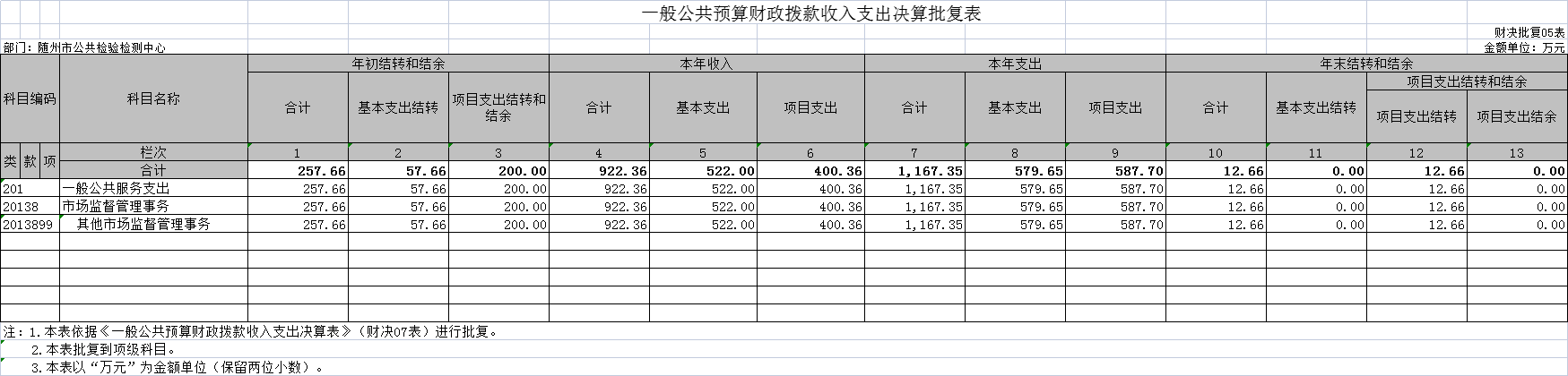 第三部分????隨州市公共檢測中心2020年部門決算表
