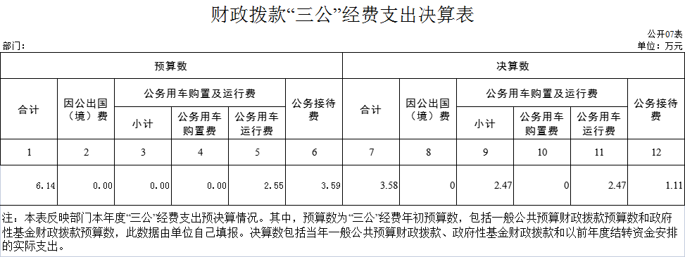 七、財政撥款“三公”經費支出決算表(公開表07)