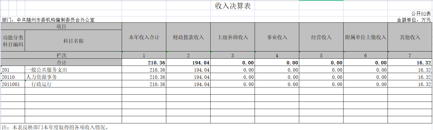 附3、2020年度隨州市機構編制委員會辦公室部門決算公開表