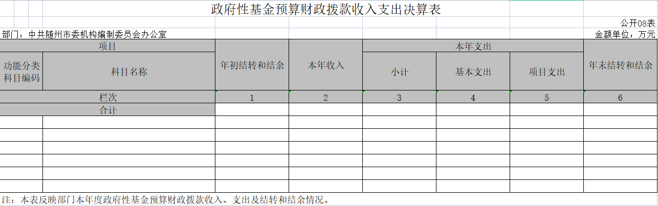 單位無政府性基金財政撥款收入和支出,故政府性基金預算財政撥款收入支出決算表(公開08表)無數據。