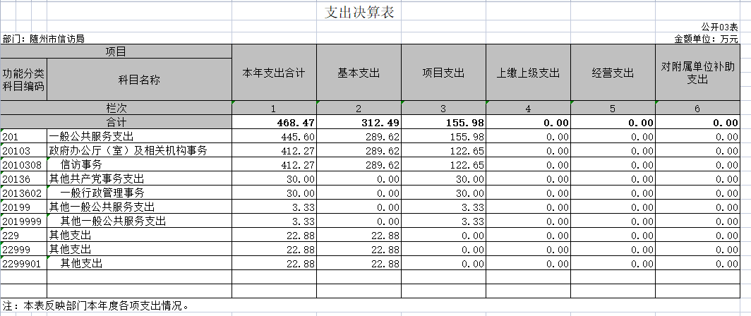 一般公共服務(wù)(類)信訪事務(wù)(款)信訪工作專項:指市信訪局用于信訪事項解難解困方面的專項支出,即信訪類項目專項經(jīng)費。