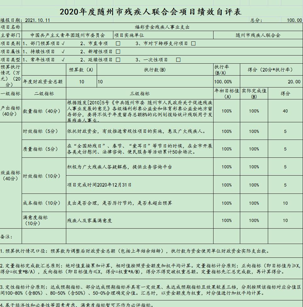 附:2020年部門項目支出績效自評表