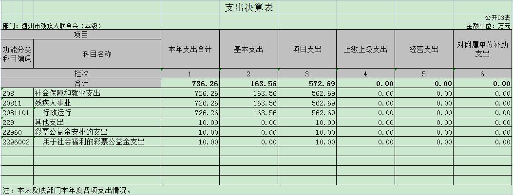 3、項目支出(2089901項):指在基本支出之外為完成特定行政任務和事業發展目標所發生的支出,包括殘疾人康復、宣傳文體、教育就業、維權信訪、組織聯絡等項目所產生的支出。