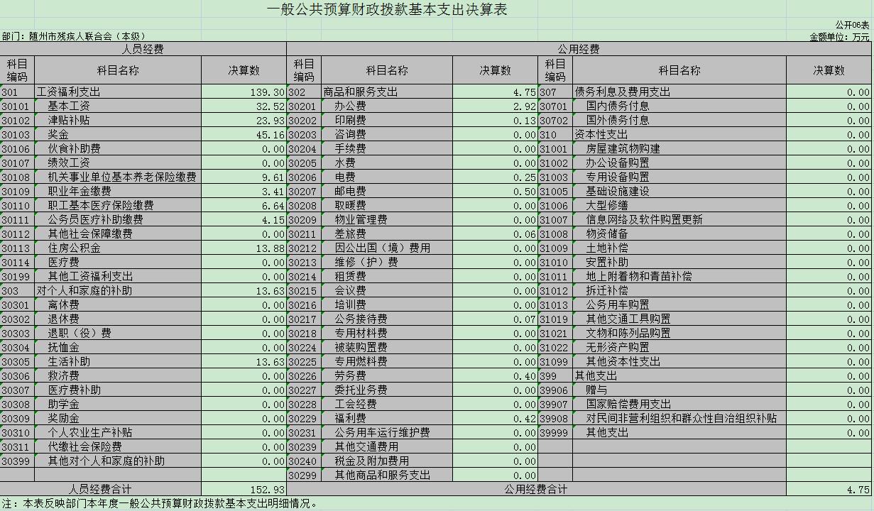 六、一般公共預算財政撥款基本支出決算表(公開表06)
