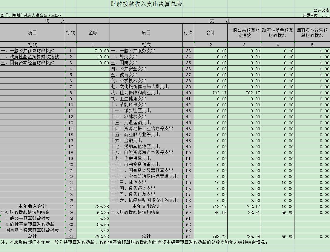 四、財政撥款收入支出決算總表(公開表04)