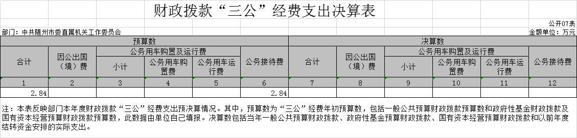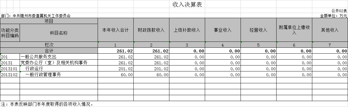 第三部分??中共隨州市委直屬機關工作委員會2020年部門決算表