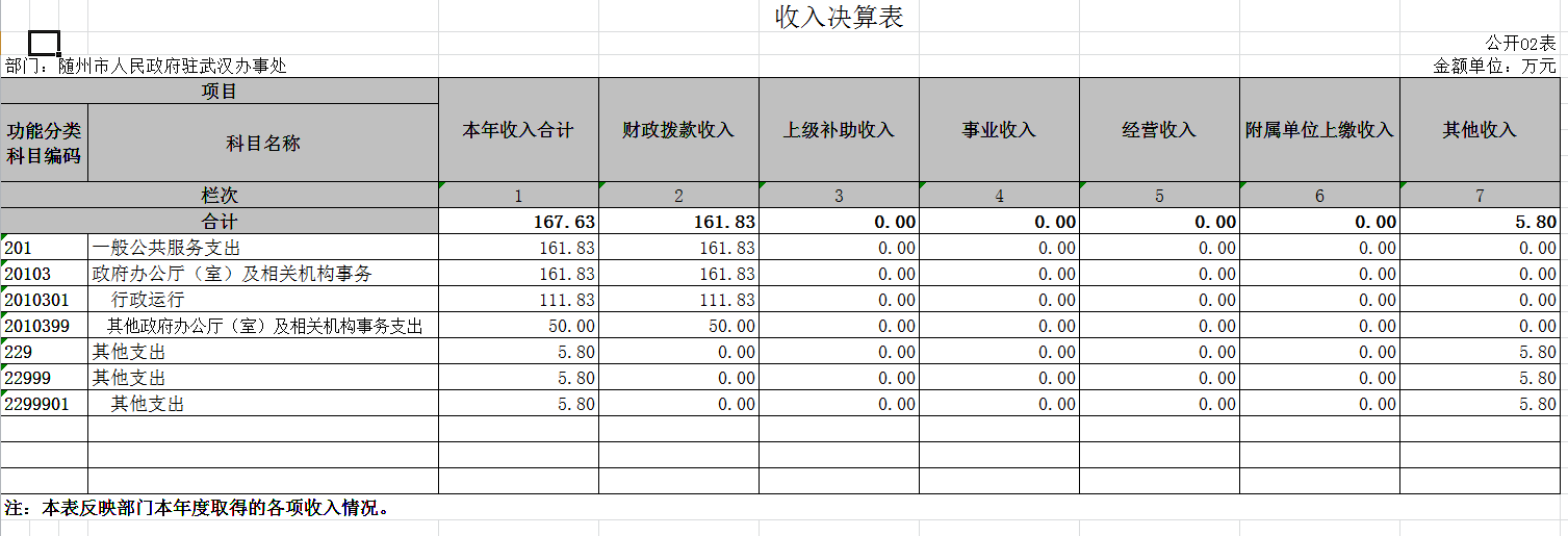隨州市人民政府駐武漢辦事處無政府性基金收支。