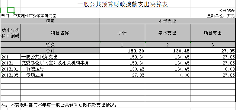 本年支出總計158.3萬元(其中基本支出130.45萬元,項目支出27.85萬元)。