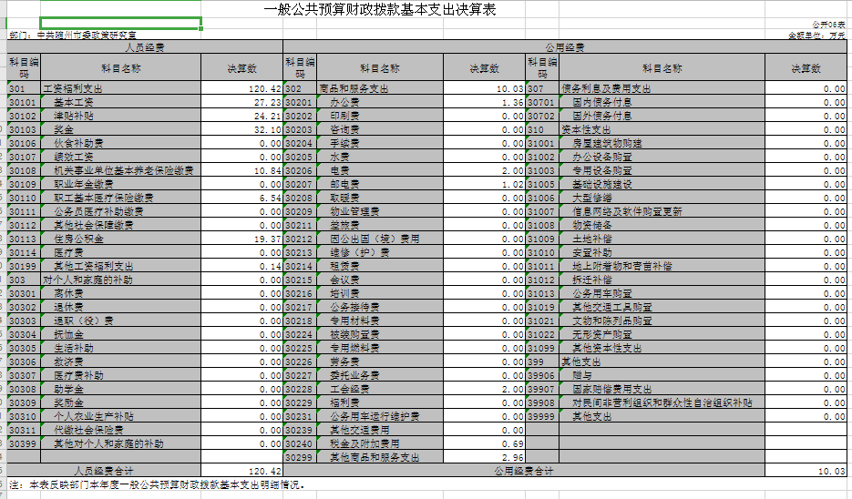 六、一般公共預(yù)算財政撥款基本支出決算表(公開表06表)