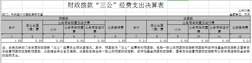 七、財政撥款“三公”經(jīng)費支出決算表(公開表07表)