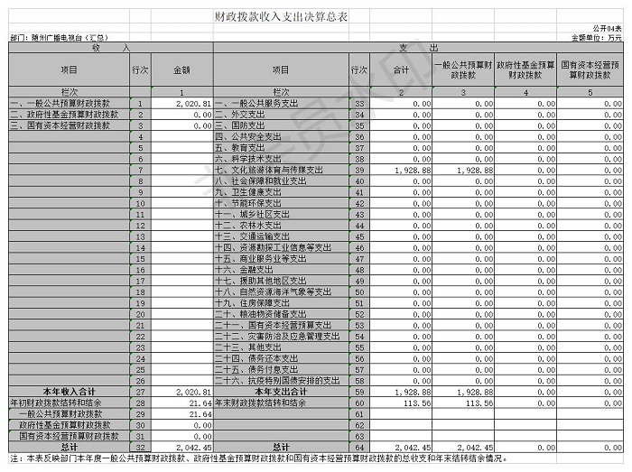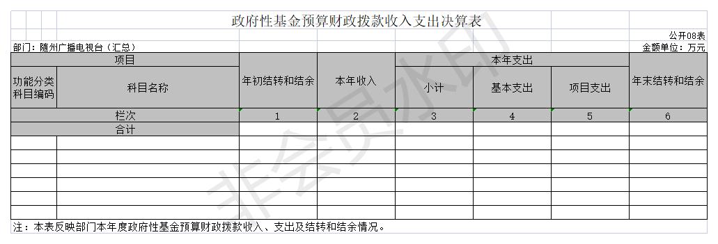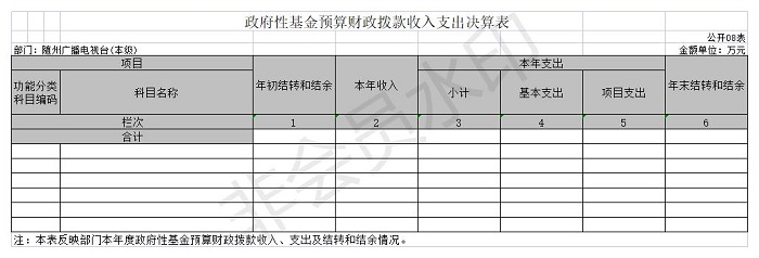 隨州廣播電視臺系統匯總及本級2020年度無政府性基金預算收支,08表為空表,和上年同比無增減。