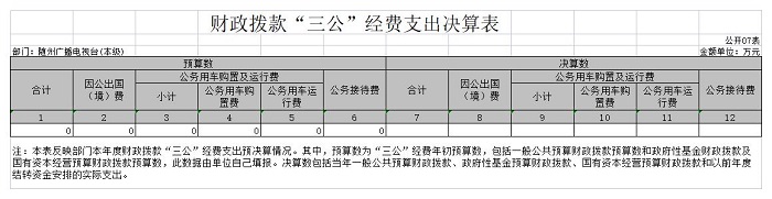 隨州廣播電視臺(本級)2020年度財政撥款“三公”經費支出0萬元,上年度財政撥款“三公”經費支出為0萬元,年初預算數為0,同上年相比無增減,原因是2020年我臺用代管資金支出“三公”經費,嚴格執行財務管理制度和中央八項規定,控制費用支出,用代管資金彌補財政撥款經費不足。