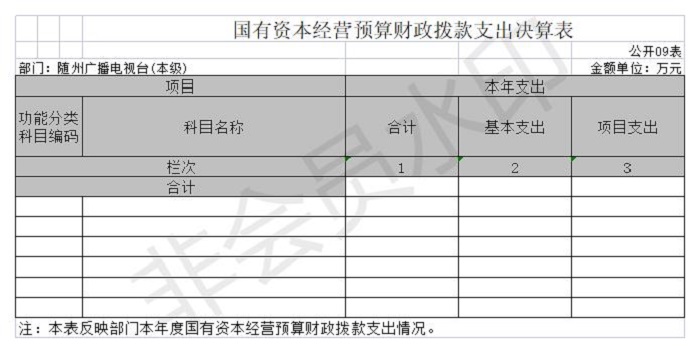 隨州廣播電視臺匯總及本級2020年度國有資本預算財政撥款支出為0,公開09表為空,和上年同比無增減。