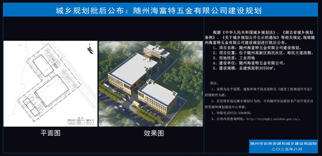 城鄉(xiāng)規(guī)劃批后公布:隨州海富特五金有限公司建設規(guī)劃