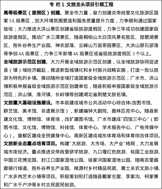 隨州市文化旅游業(體育、廣電)發展“十四五”規劃的通知